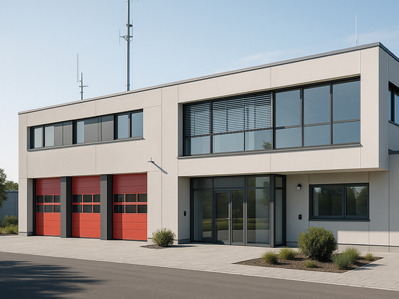 Neubau eines Rettungszentrums mit Feuerwehr und Bergwacht, inklusive Funktechnik, Medientechnik und Sicherheitstechnik sowie Notromaggregat mit 160 kVA.